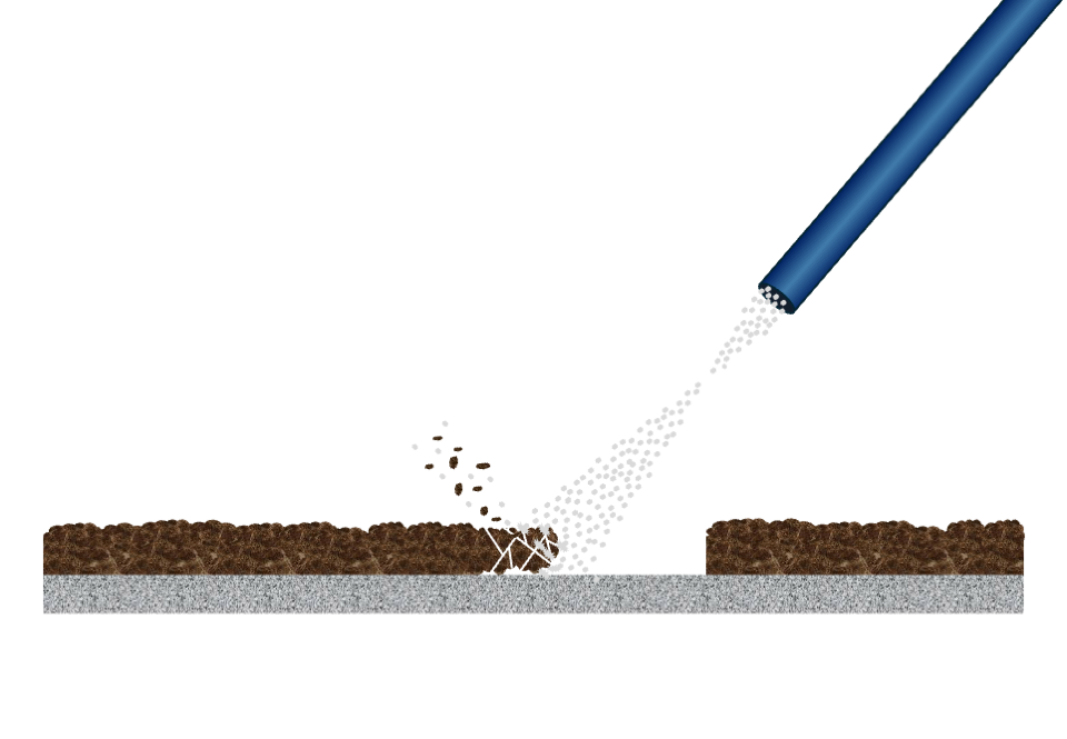 Les granulés, projetés à grande vitesse, frappent la surface avec une énergie suffisante pour détacher les salissures sans abîmer le matériau sous-jacent.