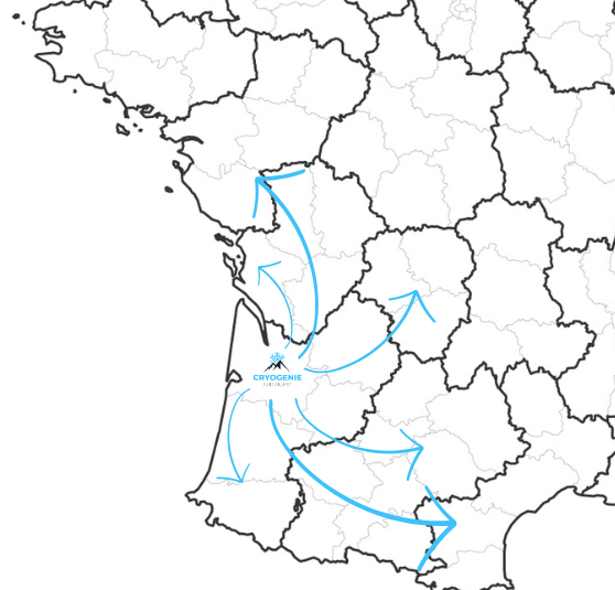 Les villes d’intervention de Cryogénie Sud Ouest: